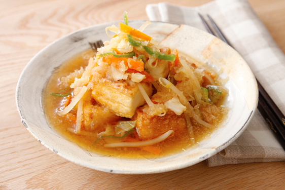 厚揚げに野菜の旨みたっぷりのあんをかけて