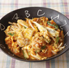 カット野菜と豚肉のキムチ卵とじ